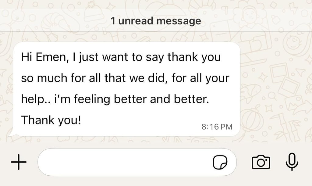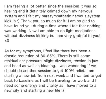 Continents apart ,as she held that sacred space, something within me came alive. My heart began to expand, fluttering, buzzing, tingling, vibrating, as waves of light moved through me. It felt as if the universe itself had always existed inside me. I felt myself beyond the confines of my physical body. Long story short, I had been hoping for a physical healing, but what I received was far more beautiful: a re-connection to something vast and loving, a dimension of energy that I now carry with me everywhere.